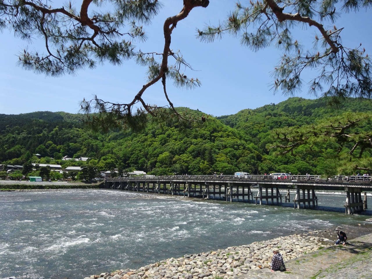 JR嵯峨嵐山から徒歩で15分程度のところにあります。桂川にかかる大きな橋です。春だったせいか川の流れの勢いがありました。嵐山との合わせて見ると本当に素晴らしいです。写真は橋を渡る前に撮る方が嵐山も入って綺麗に撮れます。