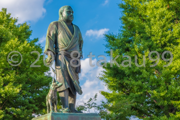 個人的には上野恩賜公園を代表する観光スポットだと思っていましたが、意外に人だかりはできてないです。ここの銅像はよく見るとマンガチックで、かなり西郷さんがデフォルメされている印象です。周りの初夏の新緑がきれいでした。