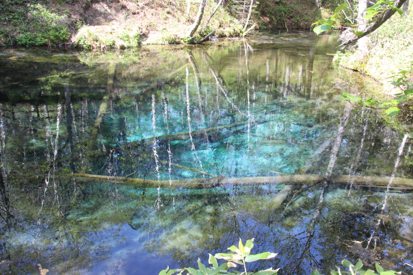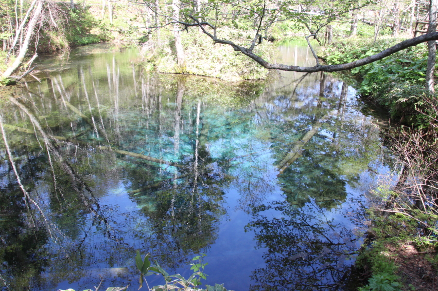 摩周湖斜里線(道道1115号線)から未舗装の脇道を2kmくらい進んだところにありました。周囲220m、水深5mと紹介されていますが、もっと小さい様に感じます。また、青い色をしているのは伏流水の吹き出している辺りだけです。訪れた時は晴天でしたので、空の青さが映って、違う意味の美しさもありました。また、たくさんのオショロコマが泳いでいました。