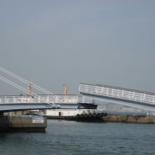 歩行者専用の跳ね橋、一日6回10時から16時まで毎時ジャストに上がり始めます(12時は無し)