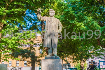上野恩賜公園内にある国立科学博物館の前の木々に囲まれた広場に立っています。研究者らしく右手に試験管を持っている姿が印象的でした。かなり大きく立派な立像です。初夏の平日に訪問しましたが、花見の時のような喧騒はありません。