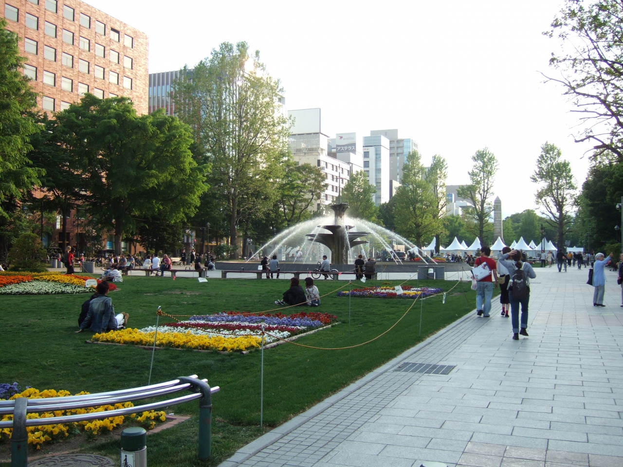 雪の季節が終わり、5月の下旬になるとライラック祭りが始まります。新緑の季節になると芝生も青々と気持ち良く、花壇も良く手入れされているので、花がいっぱいで気分がいいです。大通公園は路上喫煙禁止区域になっているので、タバコを吸うと罰金が課せられます。