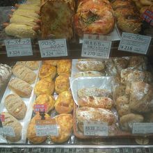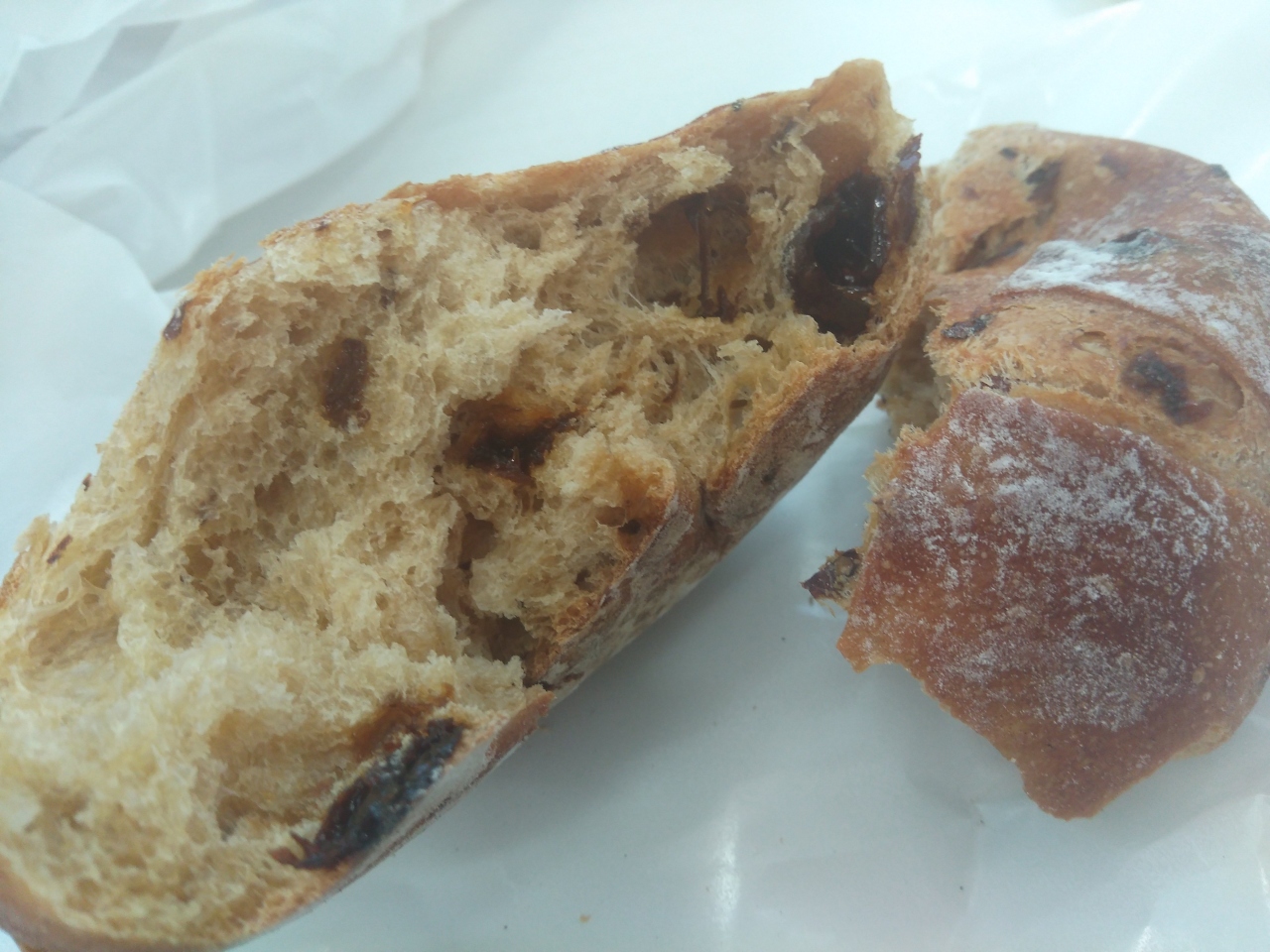 大丸あ地下の4店舗並んでいるパン屋さん向かって一番右のこのお店は試食なども行っていて美味しそうなパンが沢山並んでいます。ハード系から甘系、サンドイッチなどのお食事系も揃っています。レーズンボールは周りがフランスパンのようにしっかりとしていて固め、中はレーズンたっぷりでぎっしりとしたしっかりしたパンです。