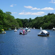 井の頭池は、井の頭公園が潤いのある公園であることの象徴。かつてほどではないにしても、今でも湧水が流れ込んでいて、よく見ると池の底の方が見えるくらい透明度があります。そして、この季節だとボートが大盛況。白い白鳥型のボートがいくつも浮かんでいました。