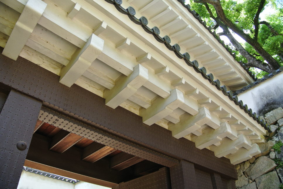 天守閣に行くのにまずこの門をくぐりました。今の門はコンクリート製の再建ということですが、外見的には違和感はありません。門を通り階段を上がると広場がありますが、ここは昔は表書院があったところで、地面には部屋の配置と名称が書かれていますので、見ていくのも面白いかと思います。
