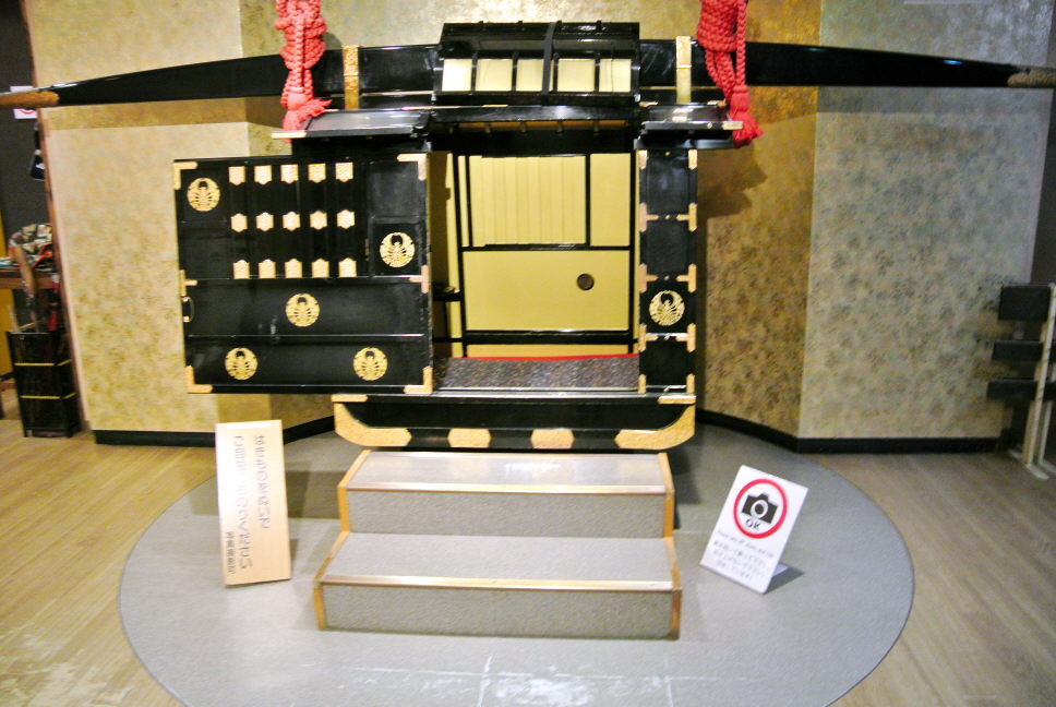 展望室や城、宇喜多家、池田家などに関する展示のほか、「サムライ達の関ヶ原」という企画展もやっていました。駕籠に乗っているところや、陣羽織、刀、鉄砲を付けて写真撮影ができるコーナーなど盛りだくさんでとても楽しめました。殿さまやお姫様の着付けをしてもらえるコーナーは各回先着5名で、すでに満員でした。人気のようですね。