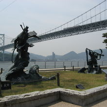 関門トンネルから地上にあがり道路の向こう側に銅像が立っていたので行ってみますと