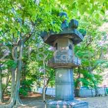 上野恩賜公園の中にある大きな石燈籠です。。上野大仏やトーテムポールの近くの木立の中に立っています。初夏の平日に訪問しましたが、見学してる人は誰もいませんでした。周りの木が邪魔して若干写真が撮りずらいようです。
