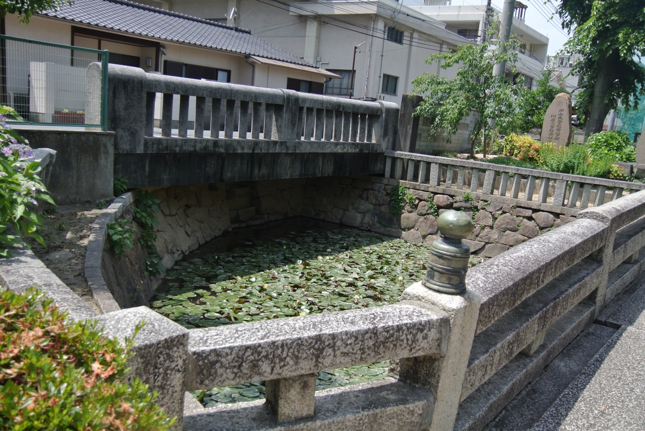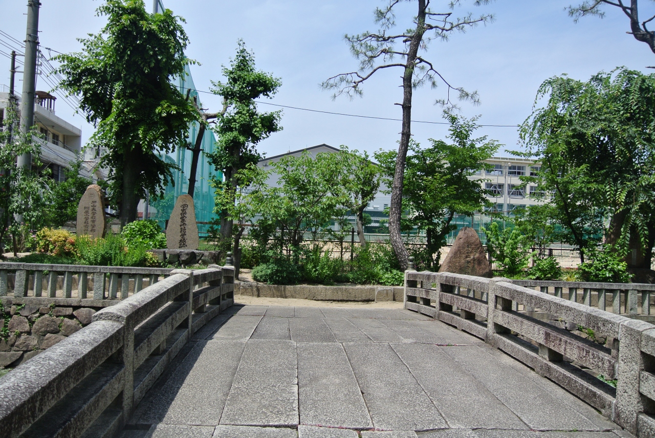 柳川筋から県立美術館方面に行くときに通りかかりました。池と、そこにかかる橋が遺構として残っており歴史を感じました。岡山女子師範学校跡、岡山二女跡という石碑も建っており、明治以降は女子教育の場でもあったことが伺えます。