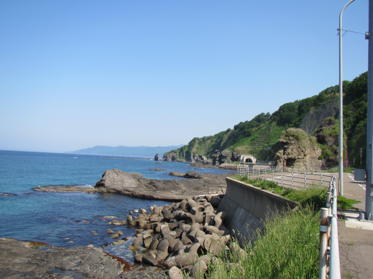 波打ち際の道路沿いにありますが、岩の前に何台か停められる駐車スペースもあって、車でも寄りやすいです。