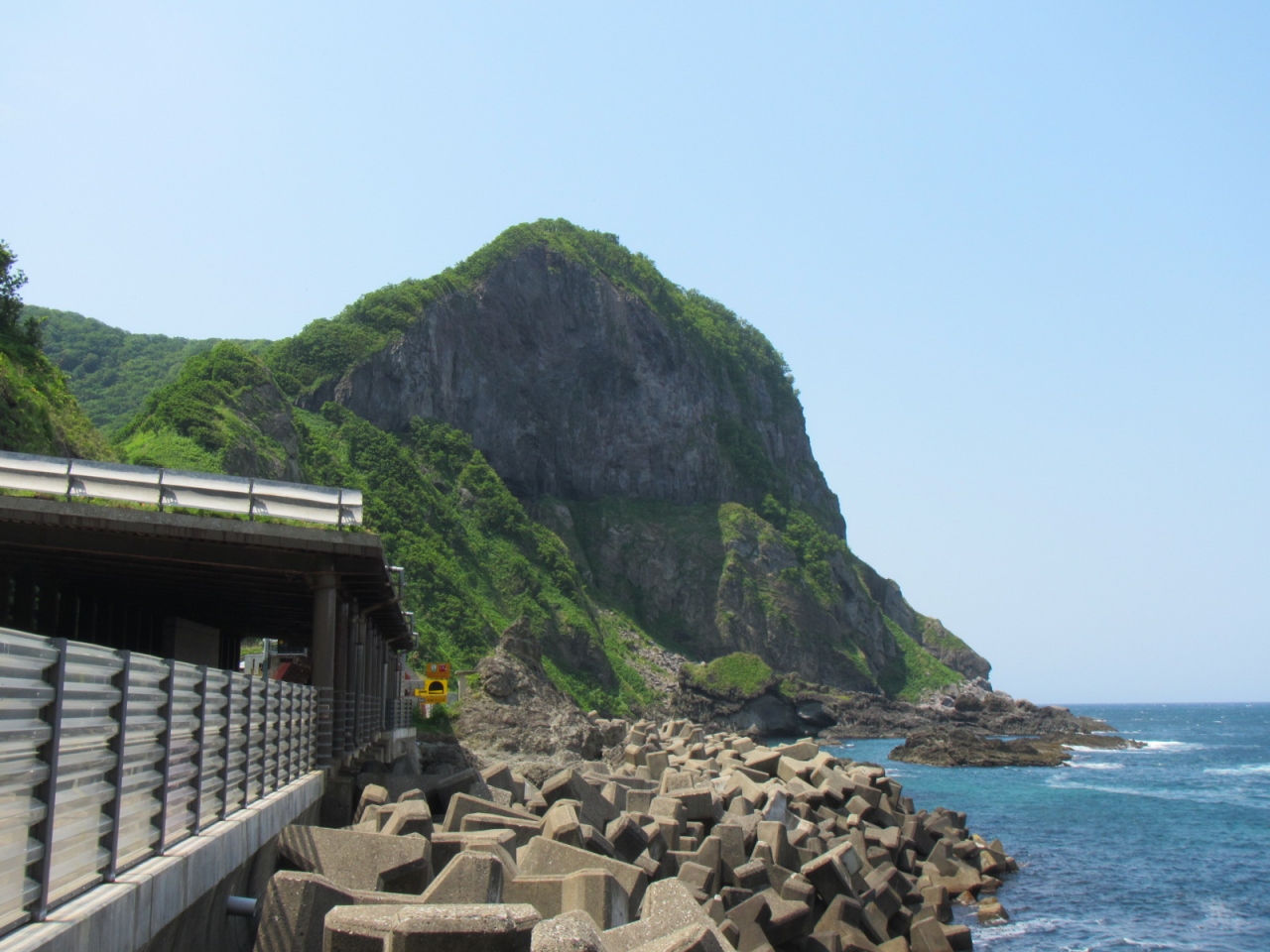 海沿いを走る国道は、茂津多岬付近は、波打ち際はさすがにたまらず、やや内陸に迂回し、山嶺を貫くトンネルでやり越しています。