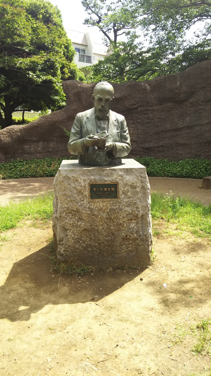 教科書でもおなじみの、アメリカの公庫学者、動物学者のエドワードモースの銅像です。