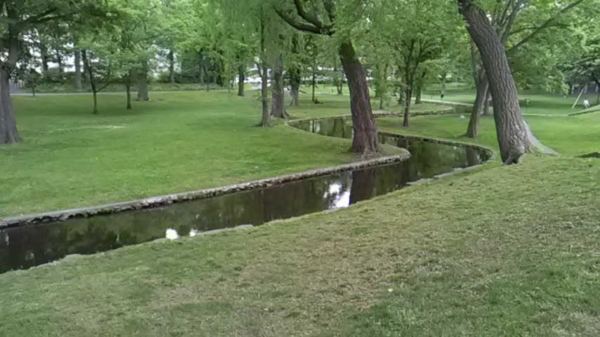 昔は札幌駅近くに源流がありましたが、約60年前に涸れてしまい、一部は埋め立てられていた流れを14年前に復活させたものです。庭園のようによく造られた流れで、さながら一幅の絵画を眺めるようです。