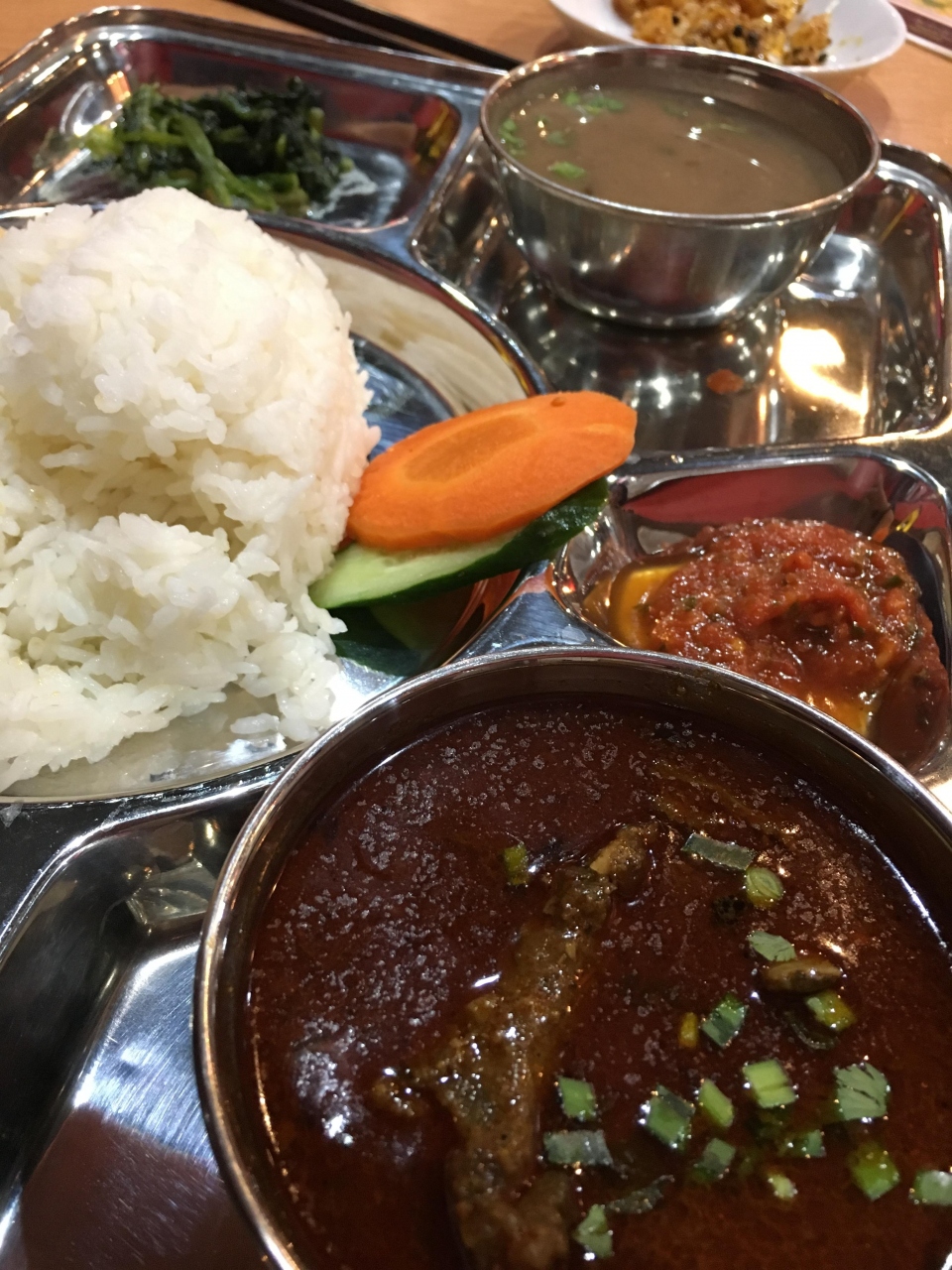 食事はプレートにカレーやおかずがもられたものがメインです。さっぱりとしたネパール食が美味しくリーズナブルに頂けて大満足でした。