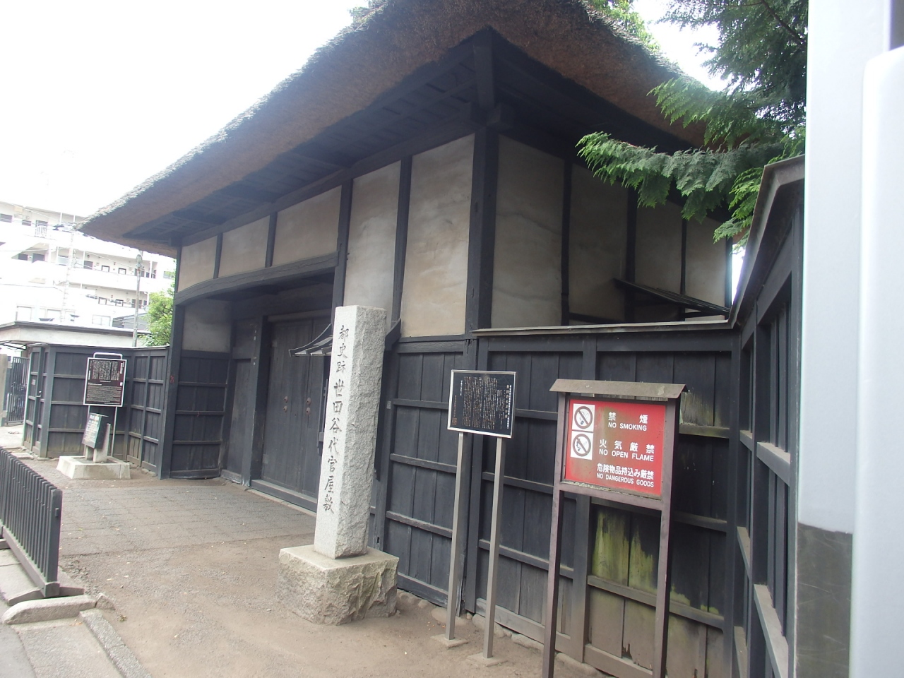 江戸時代中期以降、大場家は井伊家の世田谷領20ケ村の代官として世襲する。都内では大名領代官として唯一である。 国指定重文の主屋、表門、白州跡(石は当時のものとあるが黒い石です)(代官所のお白州は、大岡越前守に出てくる裁判をするところではなく、領内の名主が藩の役人に謁見する際に使用される)等は今も現存し、往時の代官屋敷の面影を伝えていて、それを見るだけでも勉強になります。喧騒な都会の中にもかかわらず、静寂な庭園散策で心が癒されます