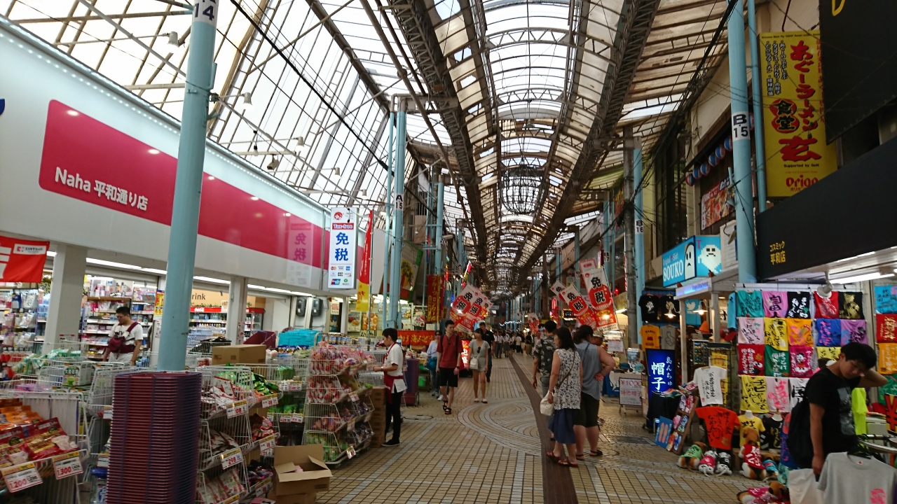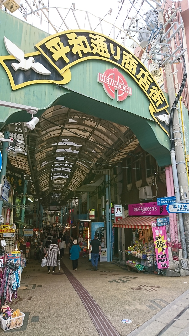 国際通りを歩いているときに、とても目立つ入口のアーケード街があって、それが平和通り商店街でした。
