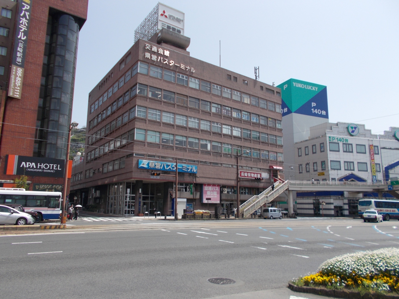 この県営バスターミナルは長崎駅前にある長崎交通産業ビル(一般に交通会館といわれている)の1階にあります。2階は長崎県物産展です。このターミナルから長崎空港とのルムジンバスが運行されています。また佐世保やハウステンボスなどの観光地への運航が行われています。ここから観光地へのルートも検討価値があります。