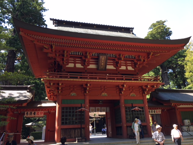 楼門はその先にあります。1700年(元禄13年)、江戸5代将軍・徳川綱吉公が造営したといわれ、入母屋造で壁や柱の朱色が極めて美しいです。