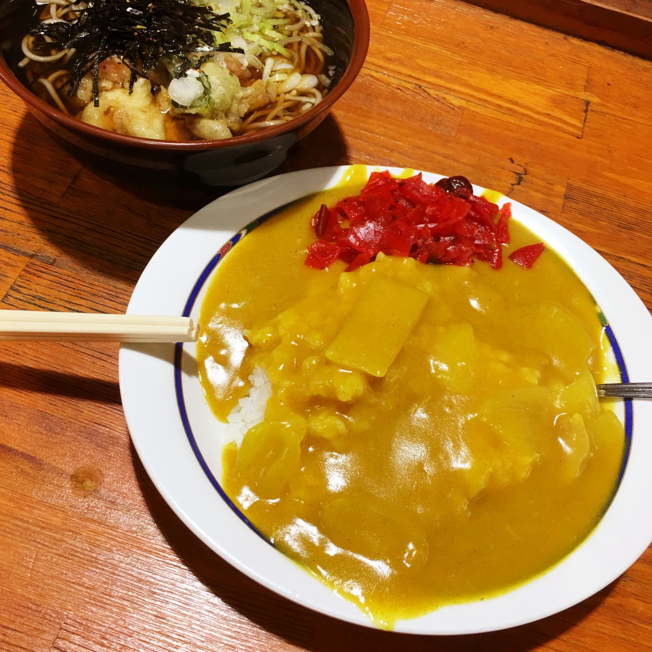 今回は夫婦で来ていますので、カレーとお蕎麦を半分ずつシェア。