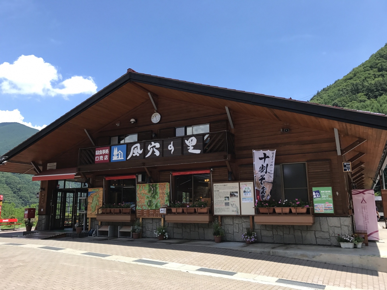 上高地からの帰り道に、この「道の駅 風穴の里」に立ち寄りました。駐車場から見ると、小さそうな建物でしたが、中はけっこう広く、とくにお土産品が充実していました。信州エリアの主要なお土産がある感じで、観光地では買い忘れたお土産品をここで調達しました。