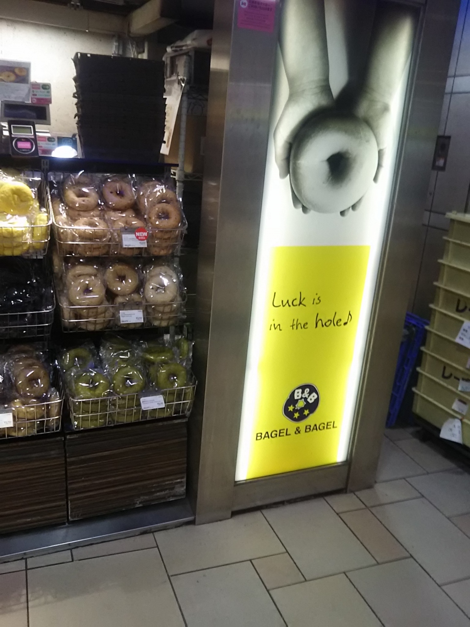 表参道の駅の中でベーグルが変えました 東京メトロの地下鉄の表参道の改札の中でベーグルの対面販売の店を見つけてプレーンのベーグルを購入しました 食事がまだだったのでベーグルで食事は済ませましたがもちもちとした美味しいベーグルでした 噛みごたえもなかなかあります