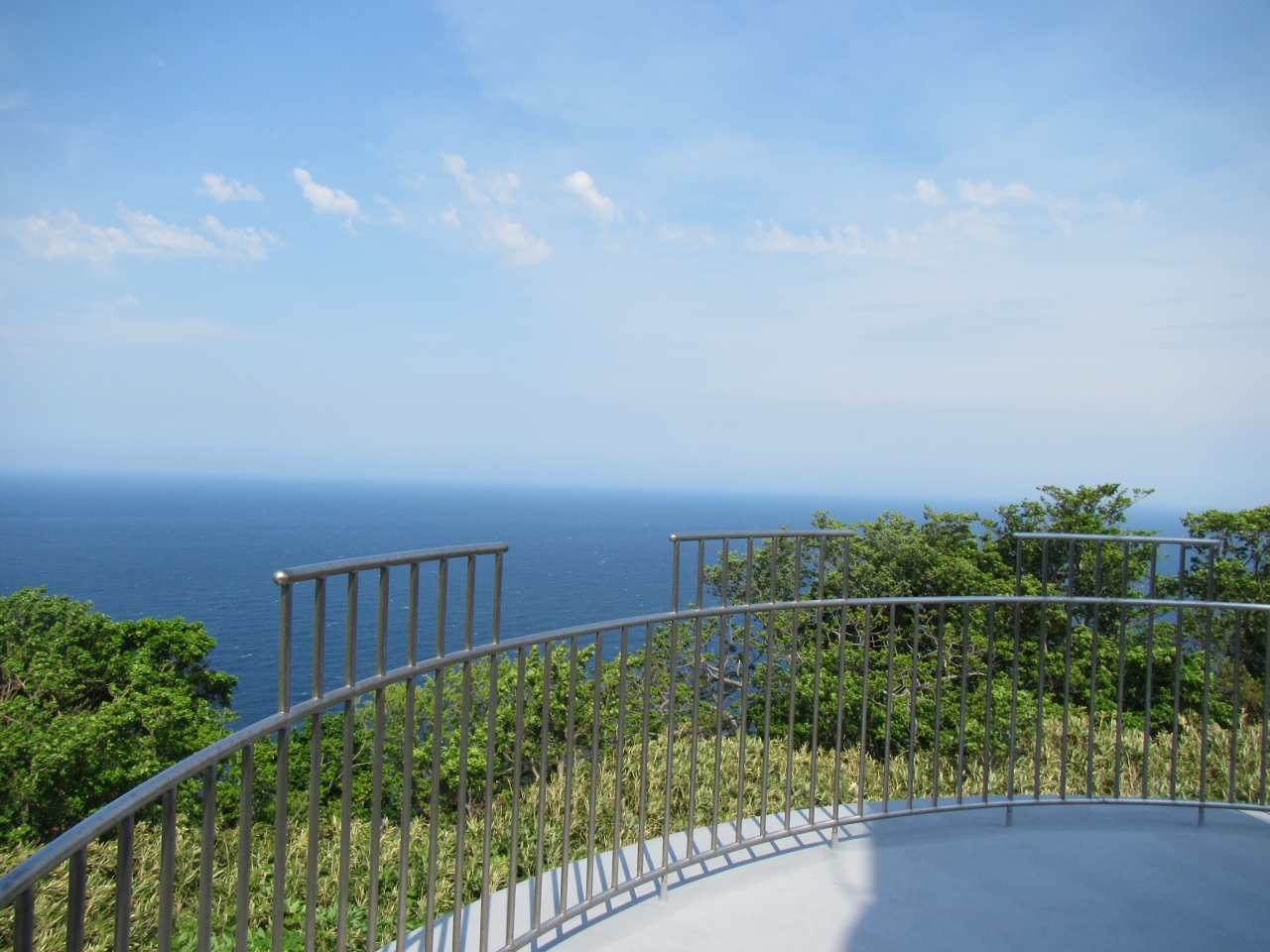 灯台に登れるようになっていて、そこから眺めると、遥かに広がる青い海が見えますが、周囲に木が生えていて、高度感にそれほど迫る感じがないのです。