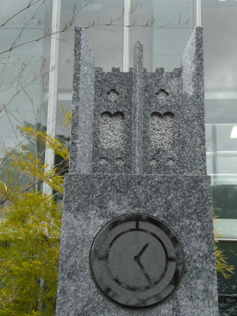石碑の上部は、早稲田大学のシンボルである時計塔をイメージしています。