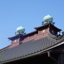 立派な三門を入って、すぐ目に入るのは本堂の屋根。屋根の両端に2つの擬宝珠。それも花弁の上に桃のようなまあるい実が乗った形のユニークさと見事な大きさ。この本堂は、天正11年に作られたようですが、どこからこのような着想になったのか。擬宝珠の屋根を見るだけでも価値ありのお寺だと思います。