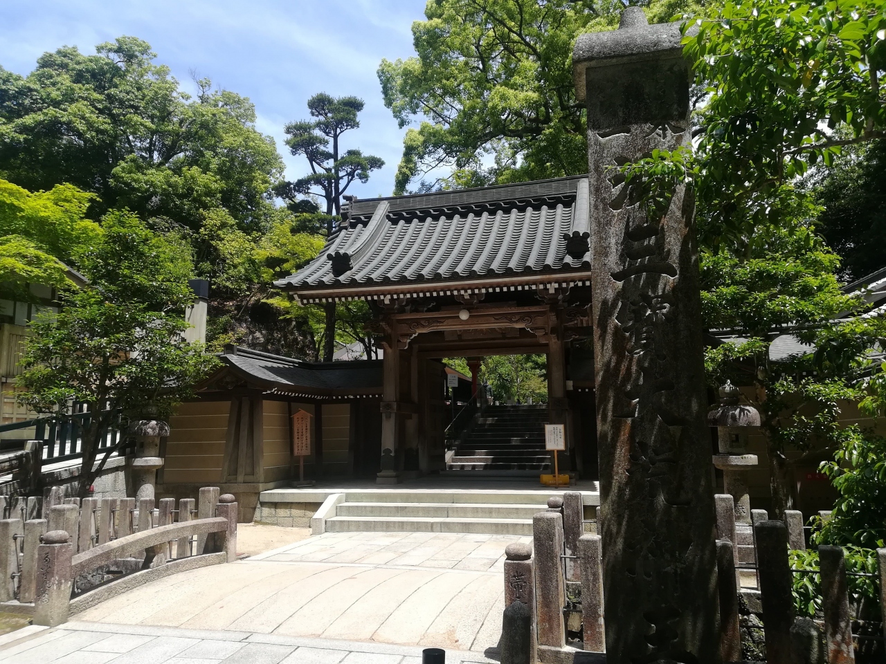 荒神さんと呼ばれる清荒神清澄寺の入口に建つに門です。大きくはありませんが、三門形式のもので、左右に拡がった形になっています。左右にはお寺の名を記したものや、ここから聖域であることを示す大きな石碑もありました。