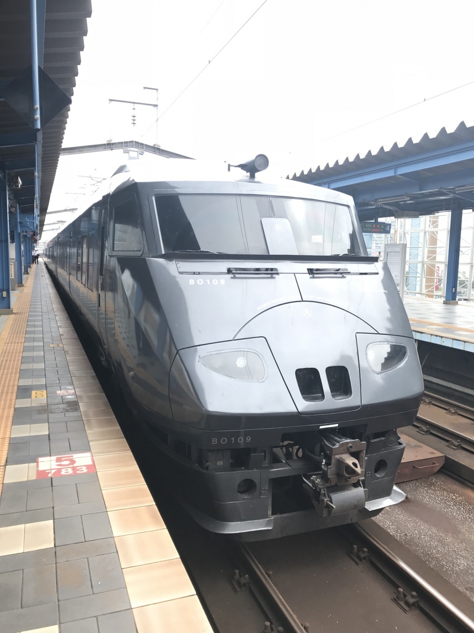 ホームに上がってみたら、特急用車両787系が「普通 宮崎空港」の表示出してる…。