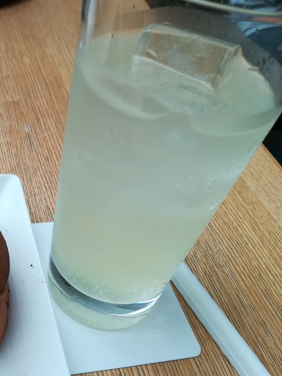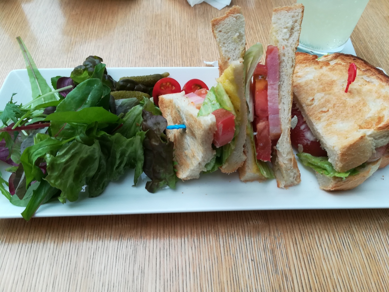 BLTサンドイッチとゆずスカッシュ。私の両隣のテーブルは中国の方々。