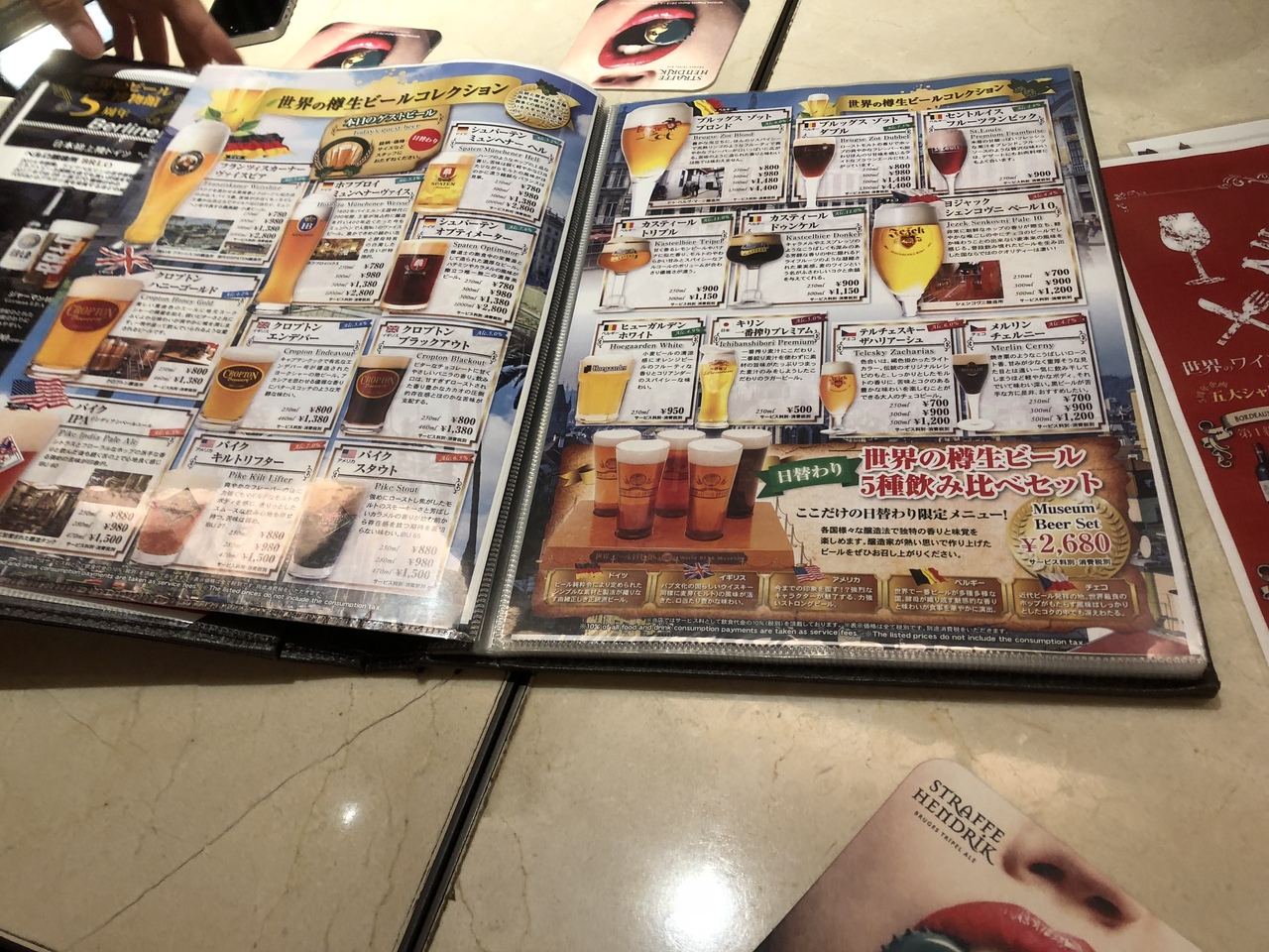 グランフロント地下の世界のビール博物館に行ってきました。今回はおなかがへっていなかったので、飲み物のみのオーダーでした。お値段は安くはないですが、そこそこの種類があって、ビール好きには楽しめると思います。