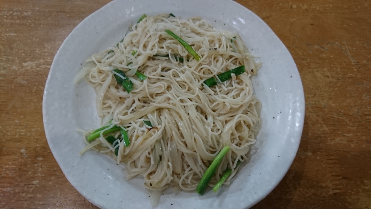 ソーメンちゃんぷるーは地味な見た目でしたが、にんにくが効いておいしかったです。