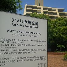 スカイウォークを背中にして左手にはアメリカ橋公園という公園もあり、週末はフリーマーケット等で賑わっています。