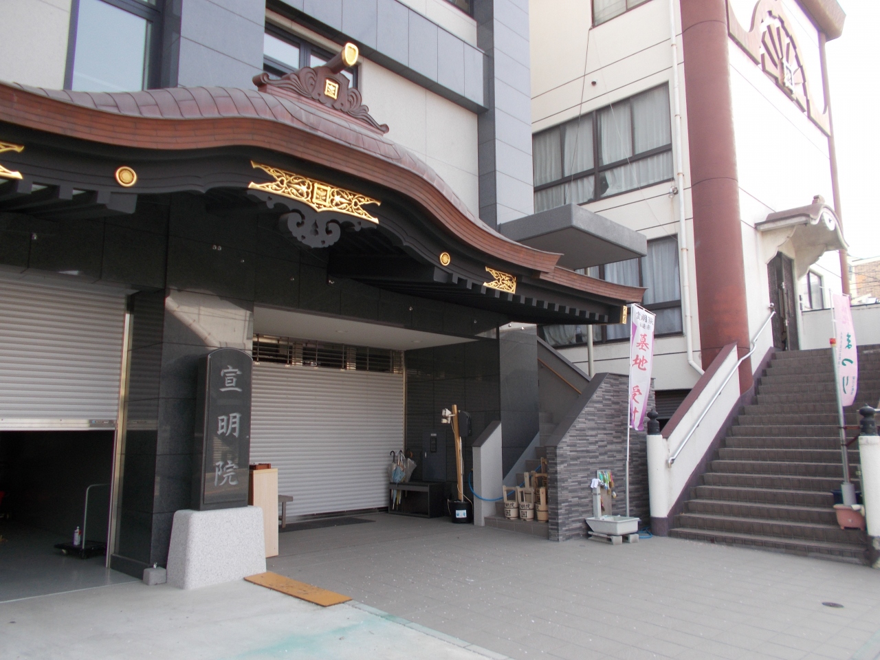 この宣明院は浄心寺の塔頭として18世紀中ごろに創建されました。浄心寺の近くにあります。この寺は火葬場ともなっています。浄心寺の火葬場に再建されたのです。そのまま今も火葬場でもあります。入り口も車が出入りができるような作りです。