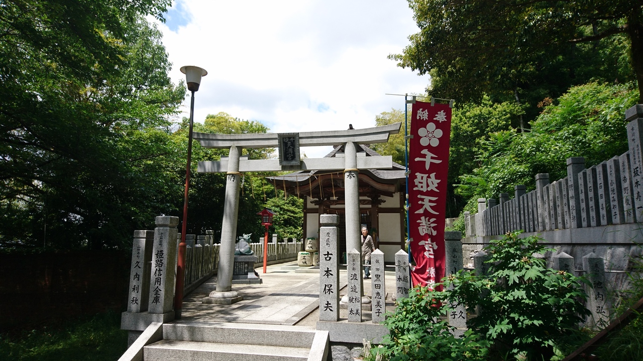 男山の素晴らしい姫路城の眺めを見た後、その下る途中の山の中腹にある小さな神社です。