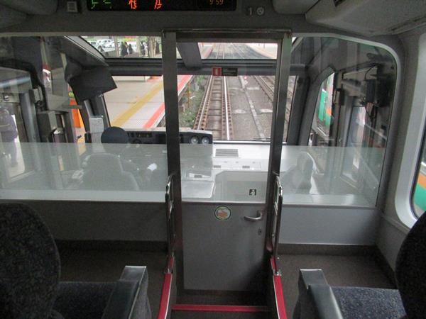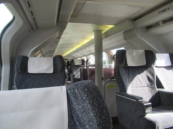 グリーン車は2列+1列の3列配置になっています。1号車の内展望席は1A,1B,1D,2A,2B,2Dの6席で、AB席が海側の2人並び席、D席が山側の一人がけ席です。