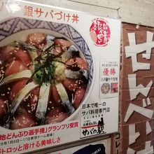 本八戸駅から徒歩10分、六日町商店街内にあるサバ専門の居酒屋さんです。2年連続の全国ご当地どんぶり選手権グランプリに輝いた「八戸銀サバトロづけ丼」を目当てに行きました。まずは生ビールのつまみに一番人気の「銀サバの串焼」を注文、これがまた脂のノリ、焼き加減等、文句なしに旨い。そしてづけ丼、づけの味付け具合、脂のノリと、こちらも全てに申し分なし。八戸魚介類の名物は、「イカ」に「鯖」。是非、足を運んでみてください。