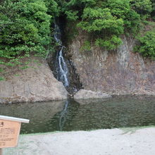 栗林公園の西側にある紫雲山から西湖の石壁を流れ落ちる滝です。一見自然の滝の様に見えますが、人工に造られた滝です。藩主が訪れた際に紫雲山の中腹に設けられた桶に人力で水を運び、樋を通して水を流したことから桶樋滝と言われるそうです。