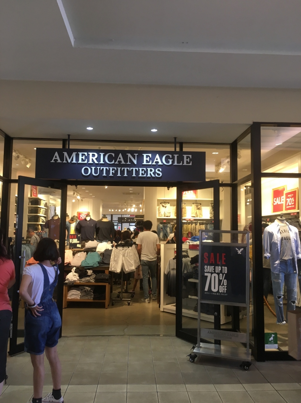 竜王アウトレットアメリカンイーグルに買い物です!こちらは敷地内の中間に位置しておりお店の外は人が多く集まる場所でもあります!バーゲンセールのときは早めに買い物すると後が楽だと思います!人混みが苦手な方は気を付けてください!