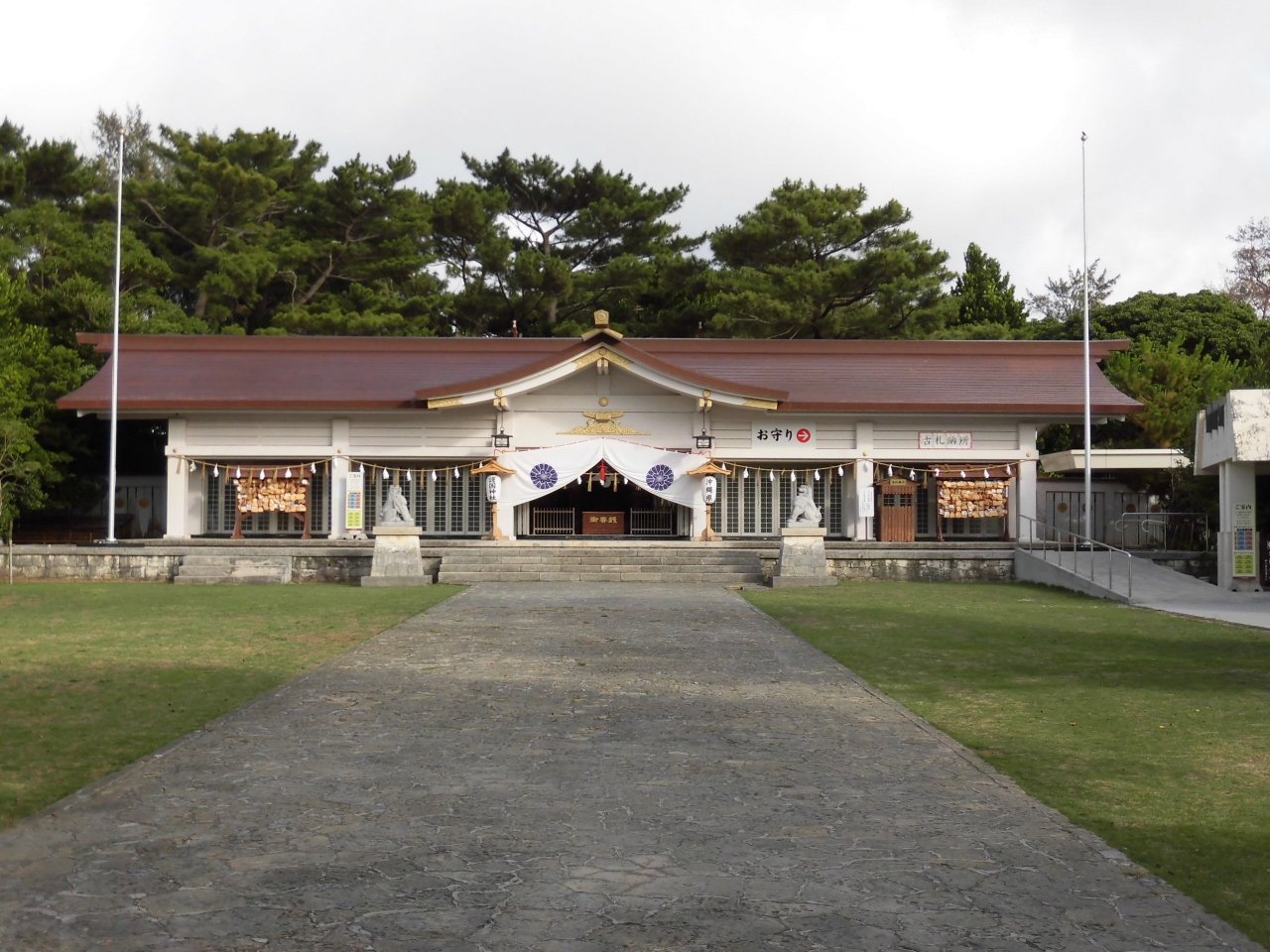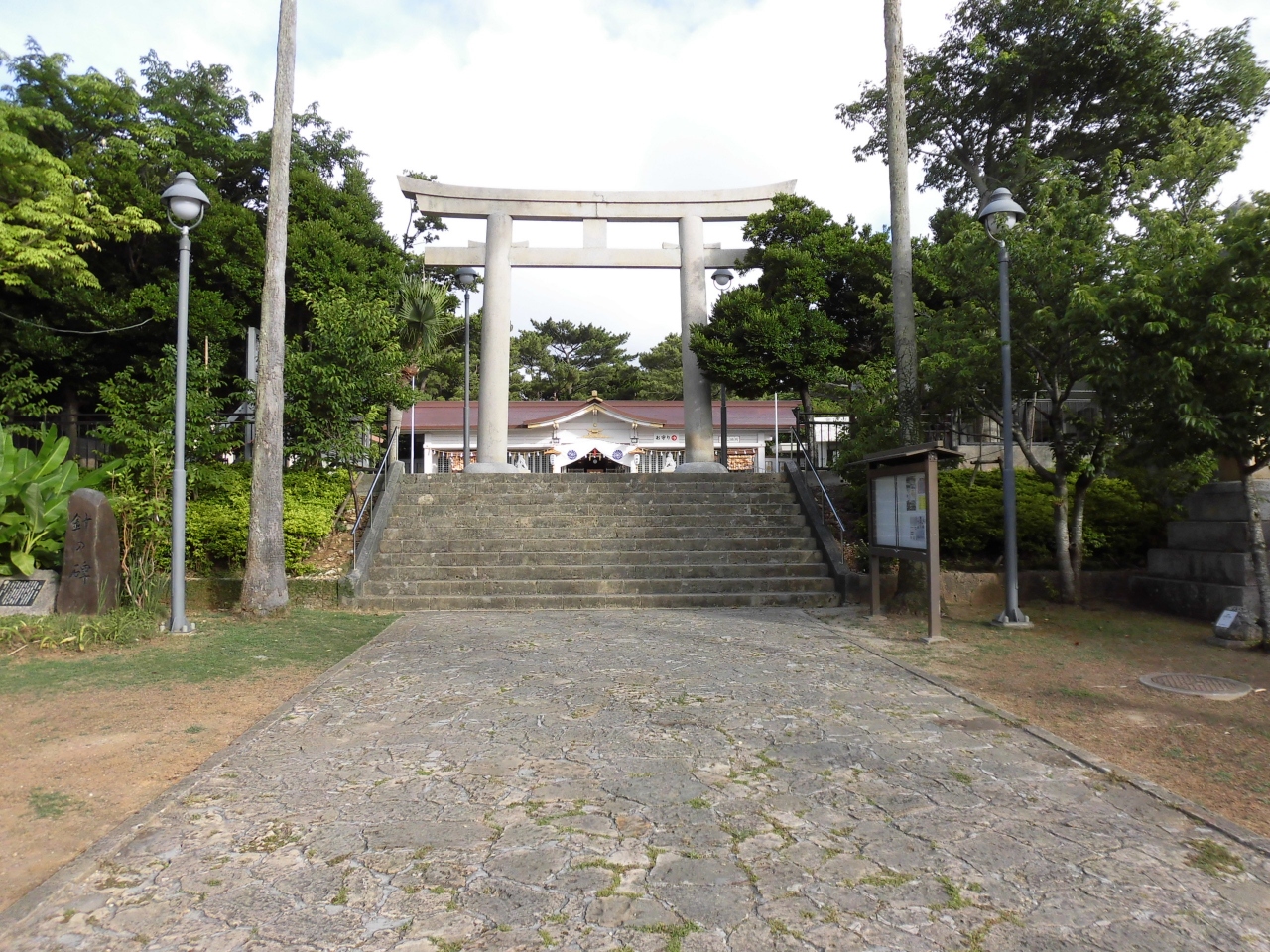 「奥武山公園」駅前にある「奥武山公園」のやや奥側にあります。ここには沖縄戦で亡くなった方の御霊が祀られていることもあって、敷地内や横側の丘にいろいろな石碑や像などがあります。これらもこの神社と合わせて見学されることをお勧めします。