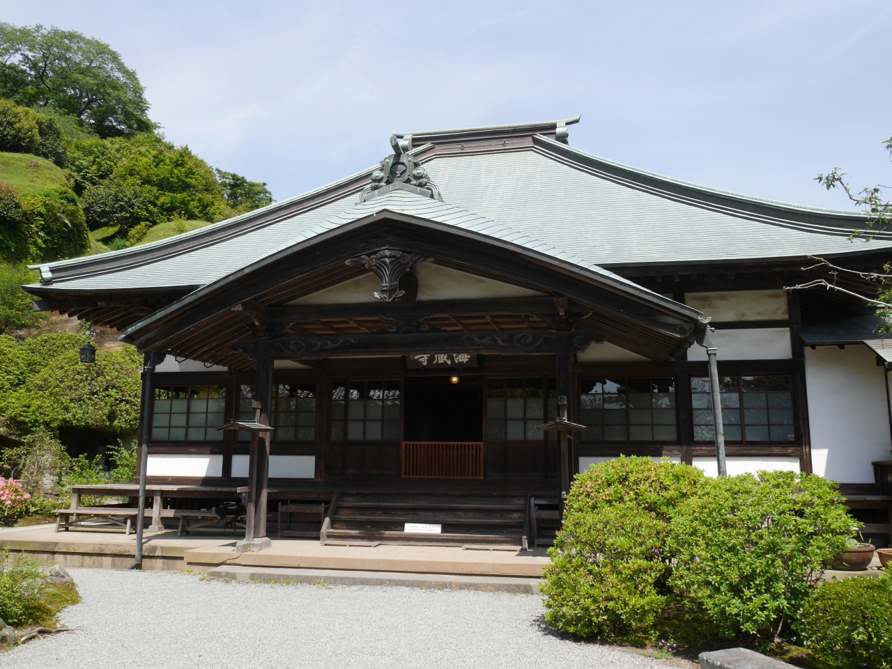 鎌倉駅からJR沿いに歩き20分くらいのところにあります。緩やかな階段の先に山門があり、境内が広がります。奥に本堂や薬師堂が並んでいます。このお寺は季節ごとにきれいな花が楽しめることで有名です。また、境内の外ですが、十六の井があり、不思議な雰囲気を味わえいます。拝観料100円を木箱に入れます。