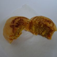 かぼちゃまんじゅうを購入。薄皮の中にカボチャの餡がたっぷり入っていました。