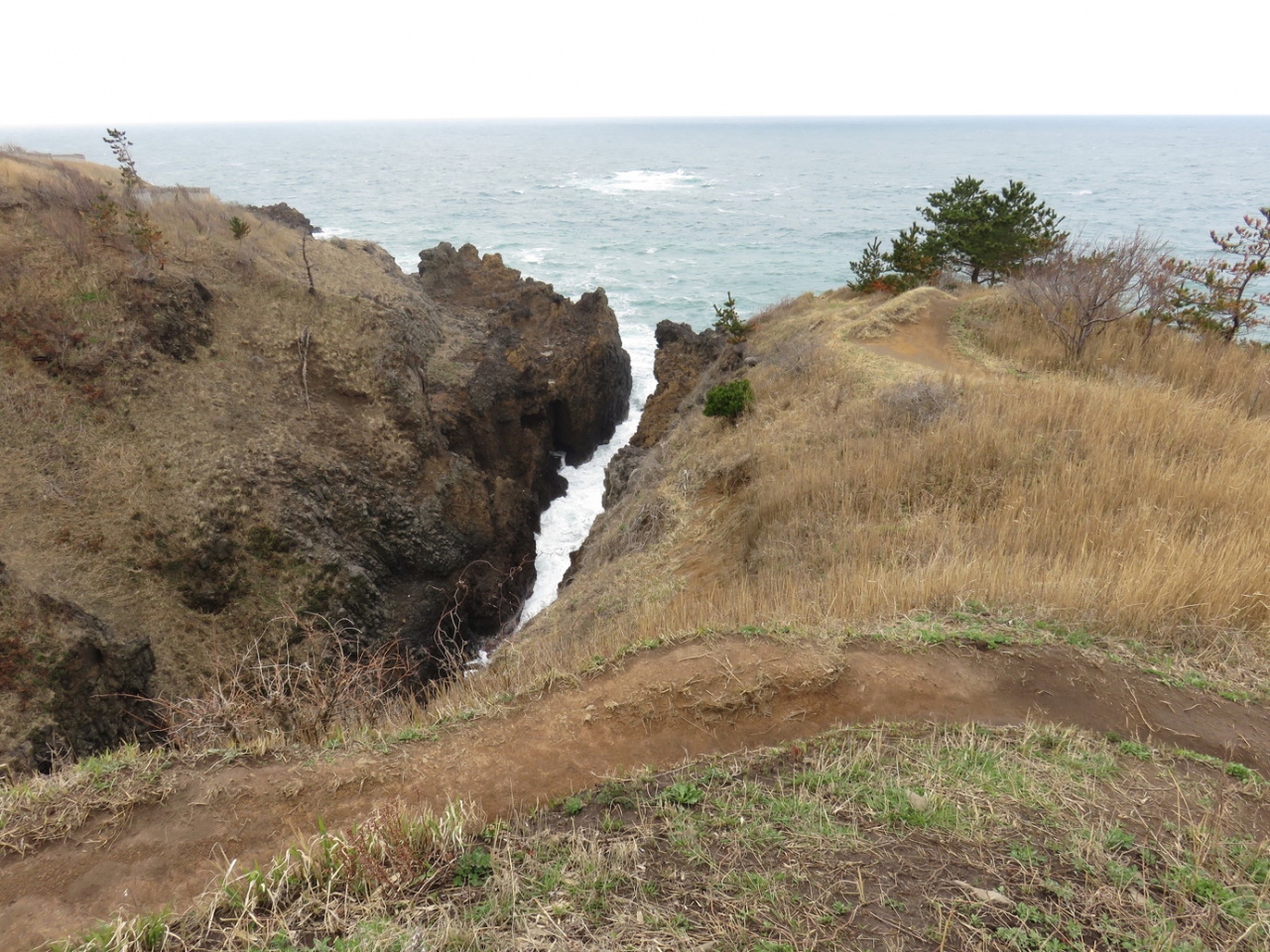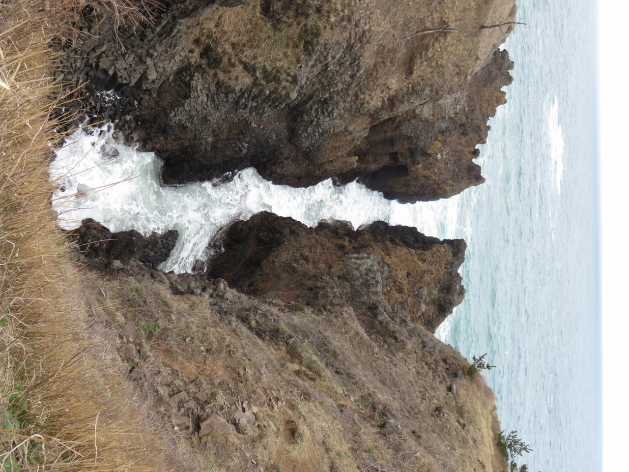 ヤセの断崖の遊歩道を奥に進むとあります。途中に木もないので強風時や炎天下ではそれなりの対策が必要です。小舟で有れば48隻を隠せそうなくらい陸地に向かってくる裂け目になります。上から見るとかなりの崖状態になっています。何故ここだけこのように深くまで浸食されたのか不思議ですね。