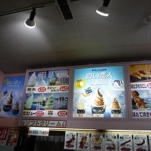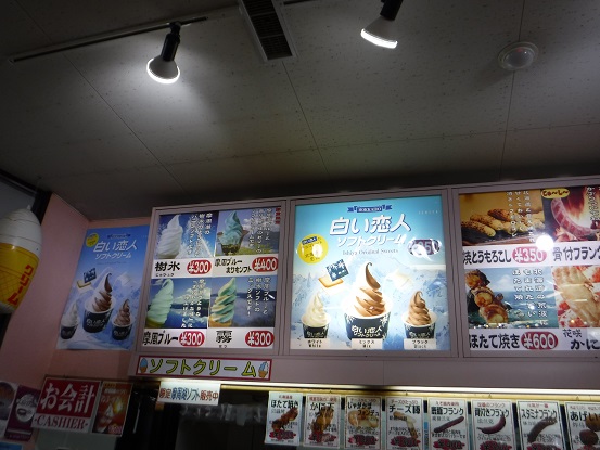 定期観光バスに乗車した際に利用したレストハウスです。生憎の天気で視界数メートル、摩周湖どころかバスの駐車場からレストハウスさえも全く見えない位の濃霧&霧雨でした。展望台には観光客が数名しかいなかったのでレストハウスも空いているのかと思いきや、建物の中は激込状態でした。レストハウスには広いお土産スペースの片隅に軽食が食べれるコーナーもあります。バスガイドさんの話だと、ここには摩周ブルーの青いソフトクリームがあるそうですが、とても寒くてさすがに手が出ず、美味しそうなじゃがかぼフォンデュにしようと思いましたが時間が少しかかるということなので、すぐできるあげいもにしました。ジャガイモを丸ごと衣でくるんで揚げたもので、二個が串刺しになっています。最初の数口は美味しく感じましたが、さすがに大き過ぎるものが二個、それも揚げ物、最後は飽きてしまい衣をはがしてイモだけ食べました。レストハウスのお土産売り場には、どこにでも売ってるお菓子の北海道バージョンが沢山ありました。