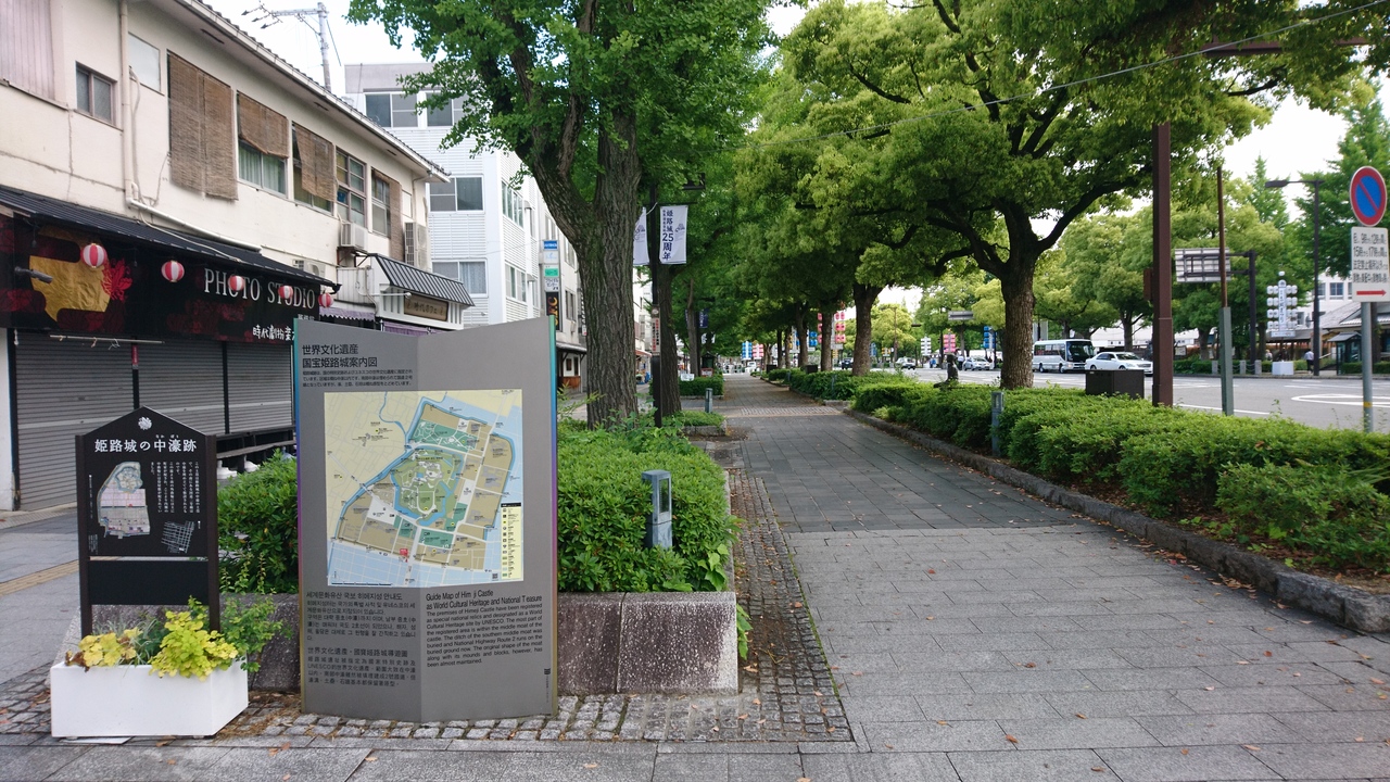 国宝姫路城を真正面に望めるメインストリートで日本の道100選の一つとされているきれいな道路です。