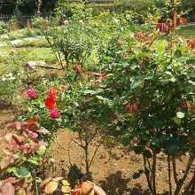 庭園にはバラの花が多く植えられ、ちょうど一部のバラがきれいに咲いていました。