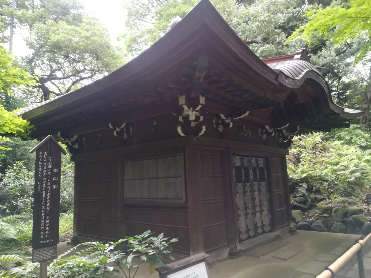 この建物は、園を完成させた水戸光圀公が若き頃に史記「伯夷列伝」を読え感銘を受けたため建てたそうです。小さいものの屋根の造りなどとても立派に造られていました。なお、得仁堂の名前は論語の仁を求め仁を得るという言葉に基づいているそうです。