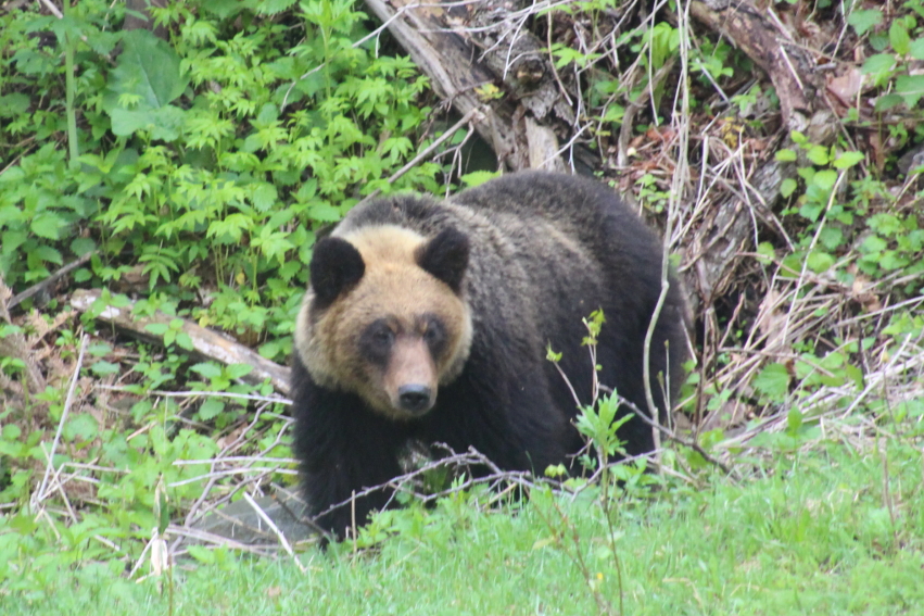 ウトロから知床五湖に向かう道で、知床岩尾別ユースホステルの横でヒグマの親子に出遭いました。子熊は母熊の近くに居たり、ちょっと離れたりしていました。いろいろなことに興味がある様で、樹木に背中を擦り付けたり、細い横枝に乗っったら滑り落ちたりと、上野動物園のパンダのシャンシャンを見ている様に、可愛かったです。