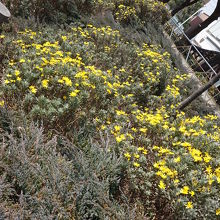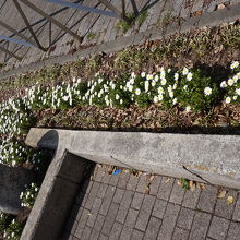 石のオブジェや花が咲いていたりと散歩していて楽しい場所です。